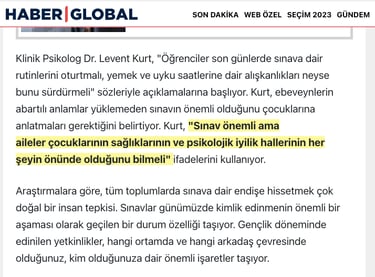 Haber Global için Liselere Giriş Sınavına doğru sınav kaygısını gençlerin, eğitimcilerin ve ailelerin nasıl ele alması gerektiğini değerlendirdim.